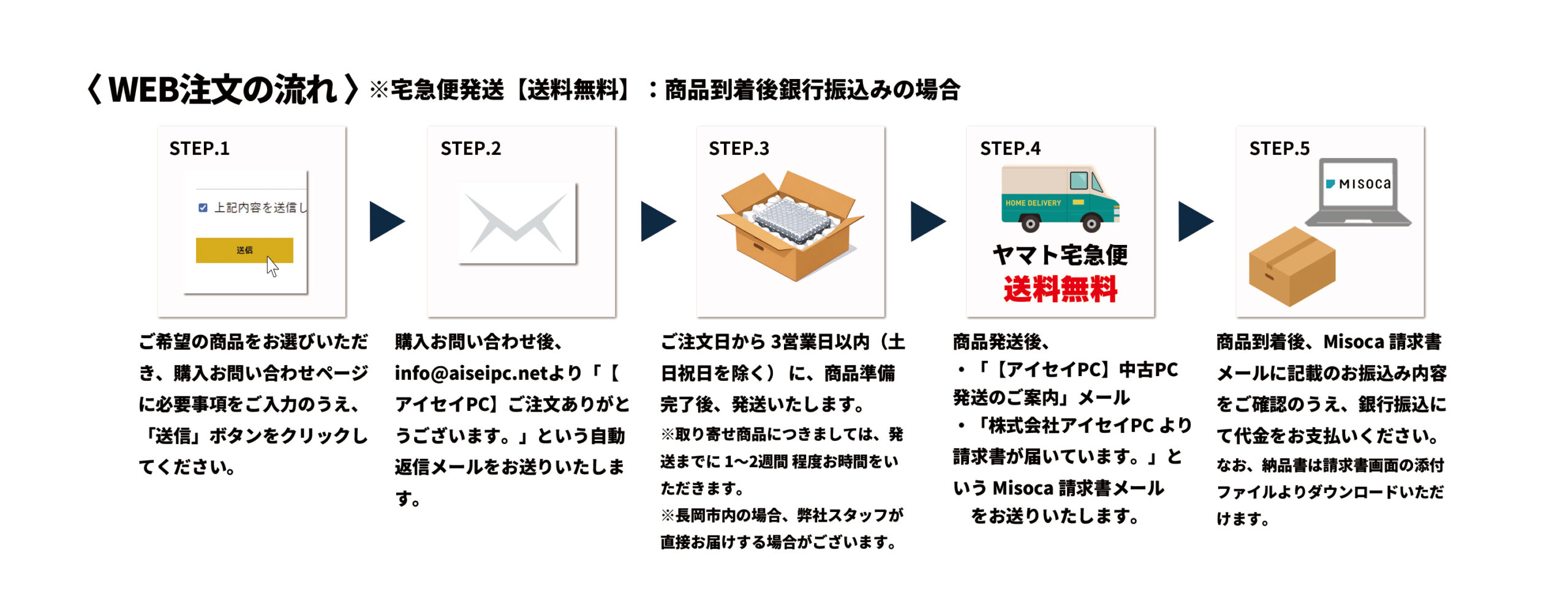 また弊社事務所(長岡市殿町)から近隣のご注文者様の場合、スタッフがご住所までお届けする場合があります。